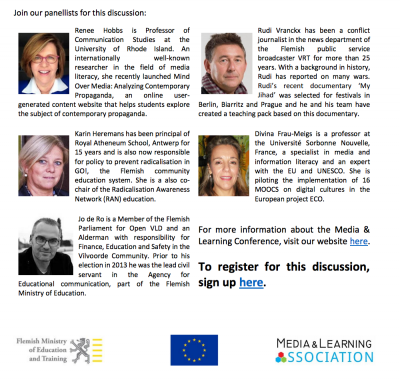 Renee Hobbs offers a pre-conference workshop on Wednesday, March 9 at the 2016 Media and Learning Conference in Brussels, Belgium where you will learn about "best practices" in the pedagogy of teaching about propaganda as a form of media literacy education.