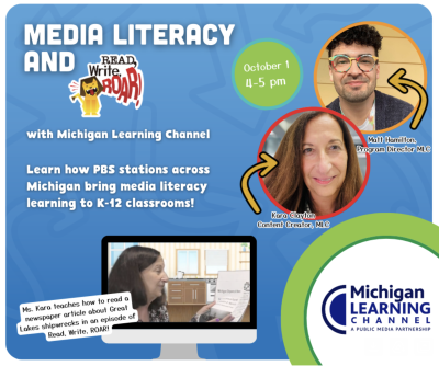 Detroit PBS and the Michigan Learning Channel are expanding media literacy offerings to K-12 educators and their students. Join us to learn about the newest series of content from Read, Write, ROAR!, a popular program from the Michigan Learning Channel. The new upper elementary series helps build media literacy skills for students in 4th and 5th grade using standards-aligned social studies and science lessons. You will have a chance to watch an episode and practice media literacy skills, ask questions, and think about how you might use these lessons in your own classroom setting. We'll also discuss Iconic Michigan, now entering its second year. This initiative brings together 20 educators from across the state of Michigan, each guiding their students through documentary filmmaking projects that spotlight the unique qualities that make their communities truly iconic.