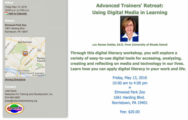 Renee Hobbs is coming to Philadelphia to work with inclusion educators at the Networks for Training and Development on Friday, May 13.