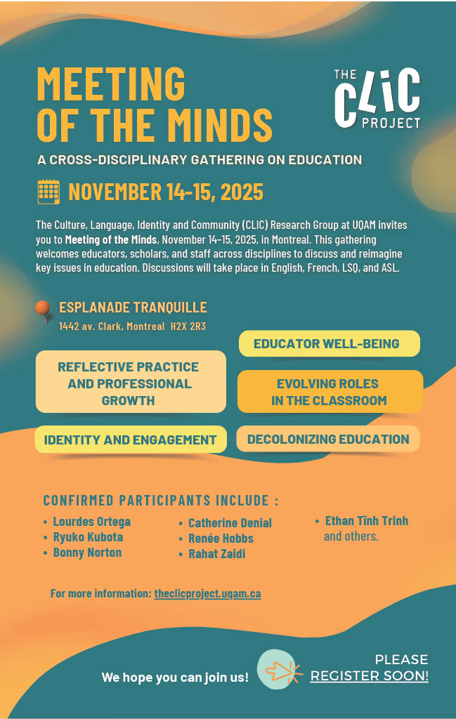The Meeting of the Minds (Montreal, November 14-15) is an in-person gathering and conference designed to create space for a rich collection of voices from multiple disciplines. Building on the interdisciplinary dialogue initiated by the Mindset Sessions, the event aims to foster collective, innovative responses to the challenges and opportunities shaping today’s realities of higher education. We look forward to welcoming participants from across the educational spectrum—senior researchers, educators, early-career academics, teachers, administrators, and support staff—from Quebec, the rest of Canada, and abroad.Â
