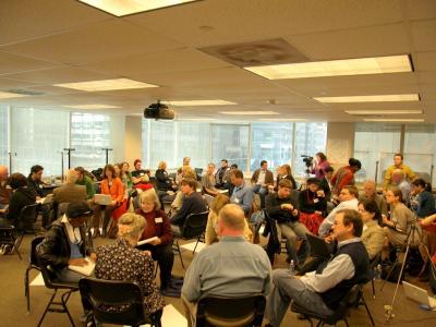 On Friday, Howard Schneider, dean of the School of Journalismat University of New York, Stony Brook offered a keynote address onnews literacy, describing his innovative model for teaching about thenews to university students. On Saturday, Mark Goodman, head of theCenter for Scholastic Journalism at Kent State, offered a keynote onthe legal challenges faced by student journalists today. Using ademocratic conference format where participants themselves offered upquestions, topics and issues to shape the conference agenda, questionsfocused on the actual practices for developing news and media literacyand the use of online and social media tools for developing civicengagement in the context of elementary, secondary and highereducation.