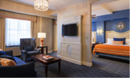 Our most popular suite measures over 625 square feet, perfect for the family or business traveler. All with city views and newly renovated with a fresh and sophisticated look while maintaining the timeless elegance of the Biltmore. Including a spacious living area with sofa, side chair, 40 inch flat screen LED television, refrigerator, and well lit workstation with ergonomic desk chair. The oversized bedroom area includes two custom made luxurious Biltmore King beds and another 40 inch flat screen LED television. Each suite features an in room safe for laptop computer, complimentary Wi-Fi, exclusive Biltmore Spa amenities, iHome, triple sheeting, and on request turndown service.