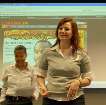 Kelly Mendoza introduced transfer of learning activities where teachers practiced applying the five key questions of media literacy in creative ways by using role-playing, production simulation, and close analysis. Small groups of teachers transferred the skills, knowledge, and attitudes that were learned earlier in the day. A handout of each activity was provided for teachers. (click blue links for pdf files of full lessons)