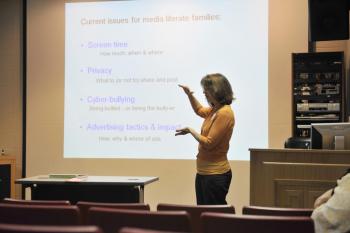 While the Girl Scouts participated in their sessions, Sherri Hope Culver lead their parents through media literacy workshops.